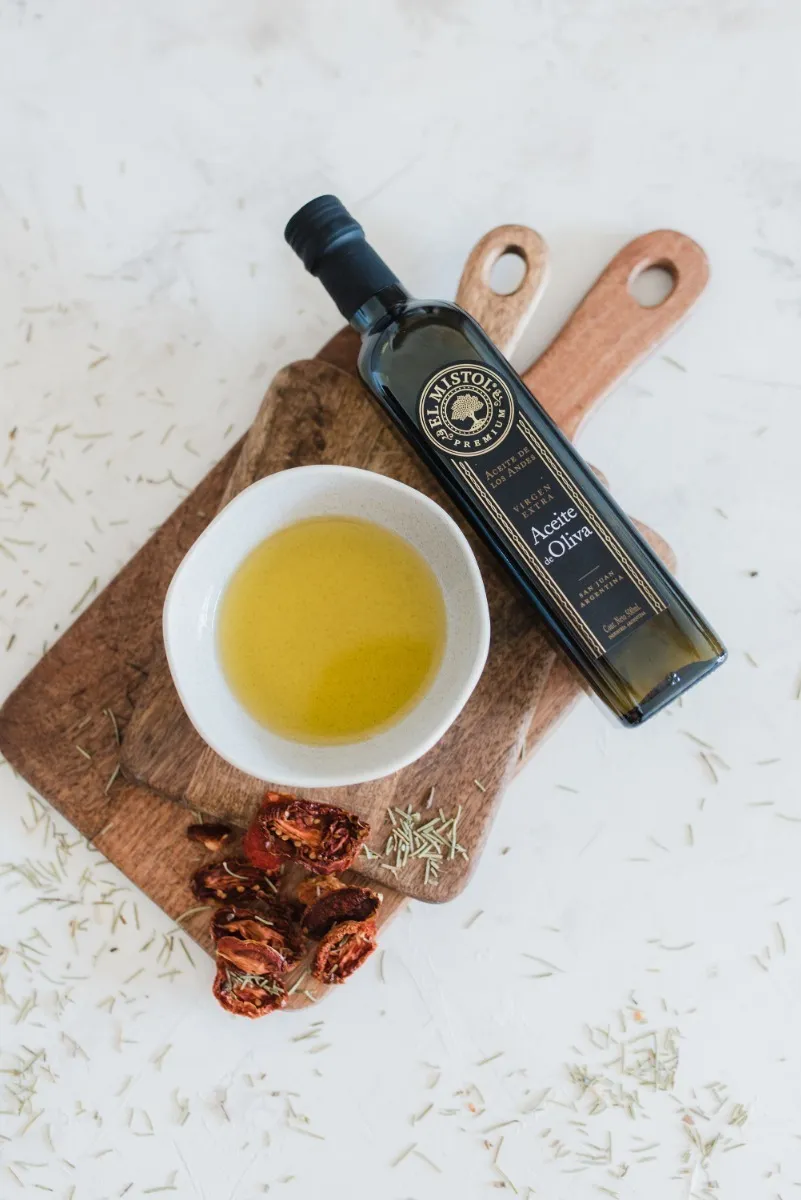 AOVE de alta calidad, producido y envasado en la finca de San Juan, Argentina, garantizando trazabilidad completa y máxima frescura.